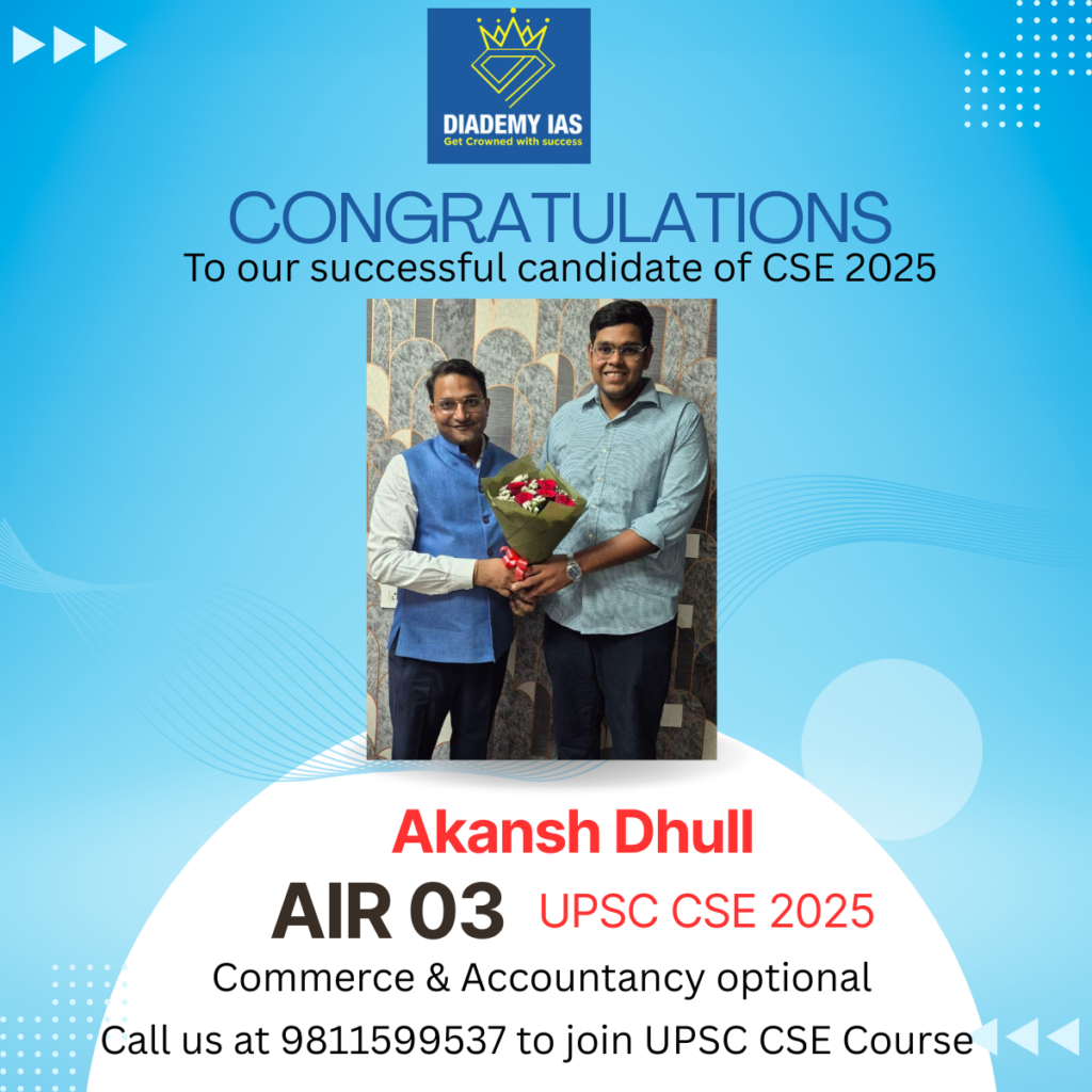 We are proud to announce the outstanding performance of our students in the UPSC Civil Services Examination 2024 (UPSC CSE 2024 Result) Result of DIADEMY IAS STUDENTS FROM VARIOUS SUBJECTS. Their hard work, dedication, and relentless pursuit of excellence have led them to achieve remarkable ranks in one of the toughest exams in the country.